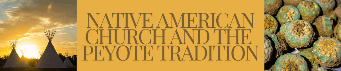 A blog image banner with title text and pictures depicting the Native American Church (NAC).